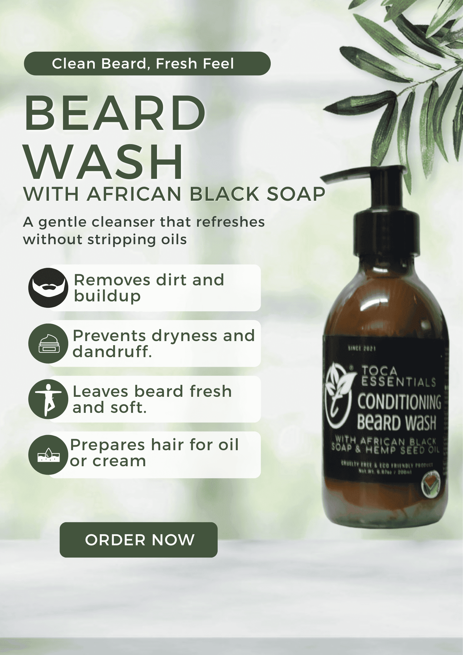Clean your beard without dryness using our natural beard wash. This gentle wash removes dirt and oil while keeping your beard soft and fresh. Perfect for daily grooming